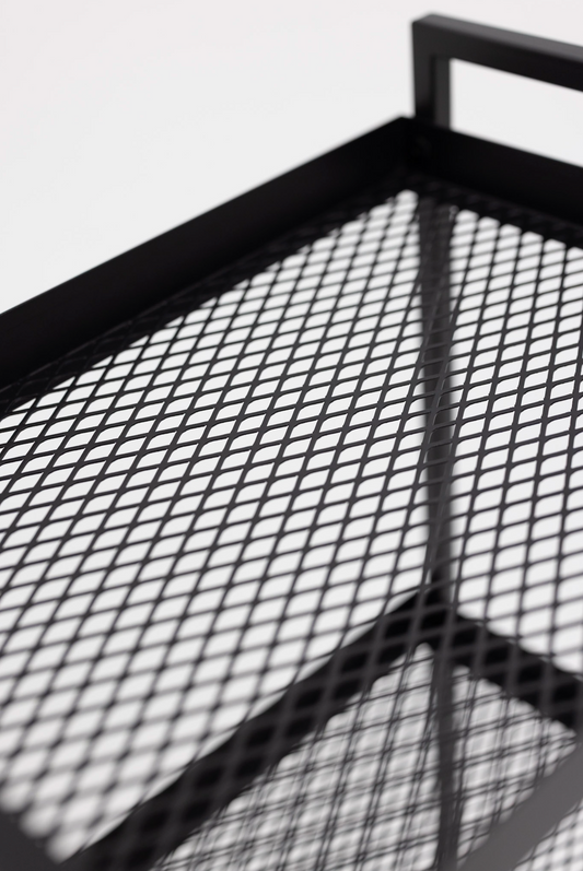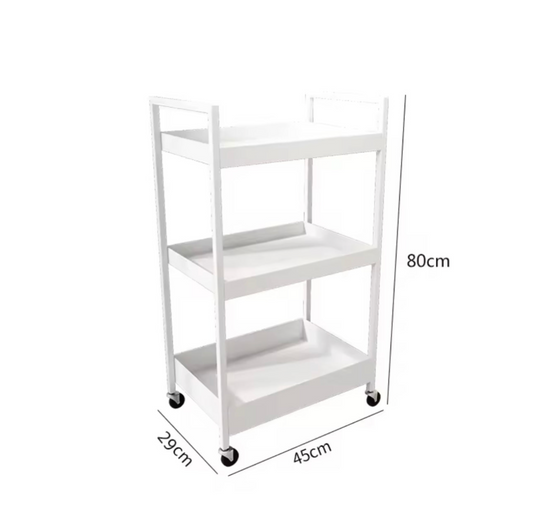 A sleek, modern beauty trolley with a stylish, minimalist design. The body of the trolley is made of high-quality, durable materials, giving it a professional and luxurious feel. The frame is likely black, with a glossy finish that adds a touch of sophistication.