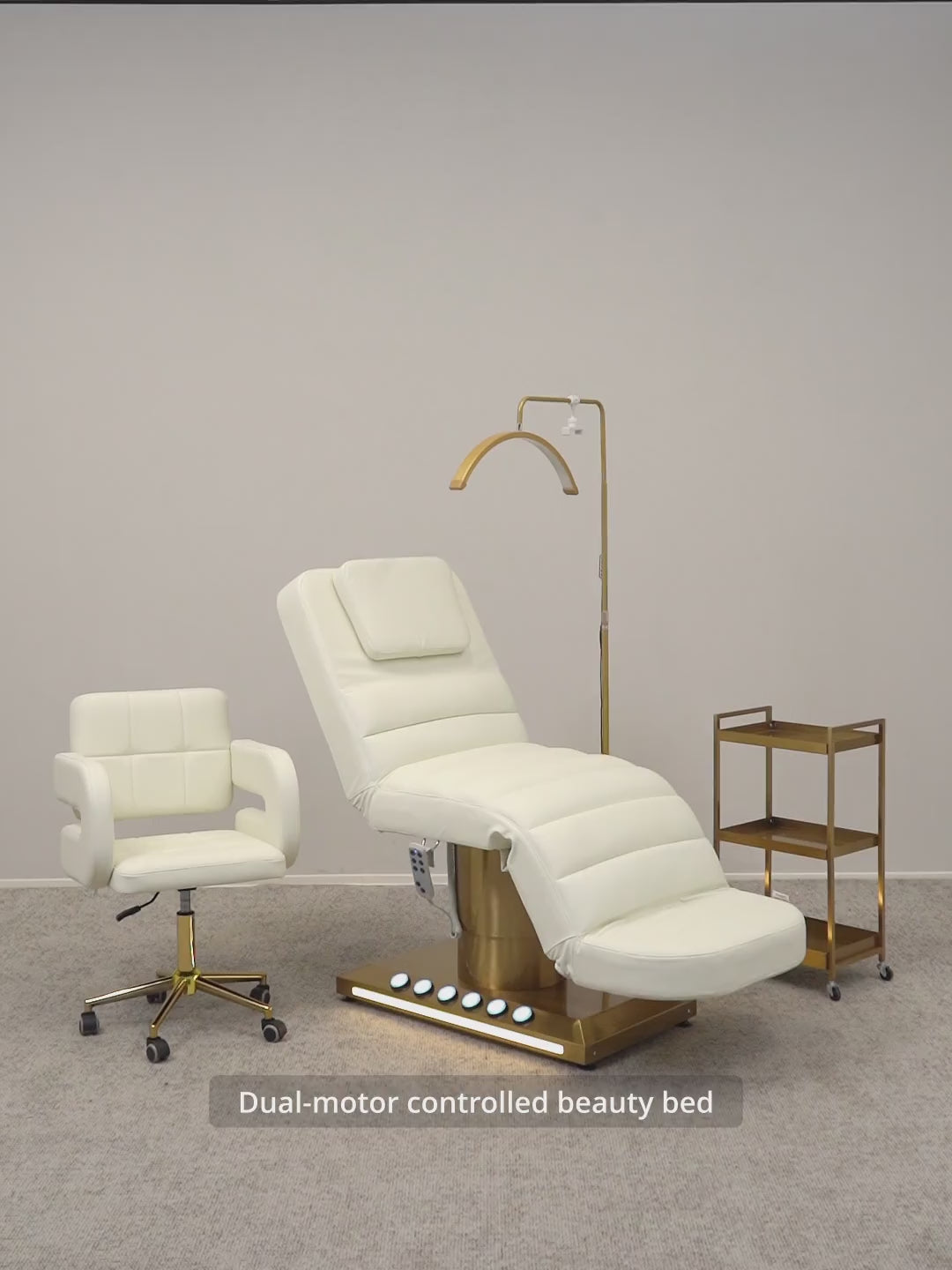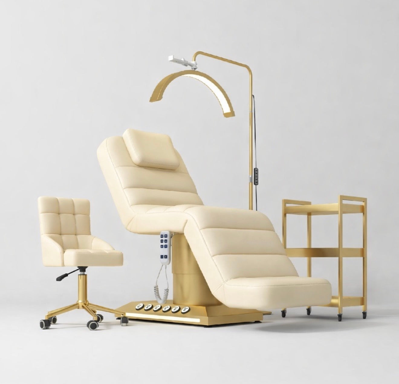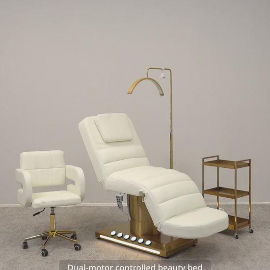 At the centre of this package is the Viviana Bed, a beautifully engineered electric beauty bed offering exceptional comfort, stability, and smooth adjustability. Paired with a matching practitioner chair, high-intensity LED lighting, and a practical multi-tier trolley, the Viviana Bundle delivers a clean, professional environment designed to enhance workflow and treatment quality.